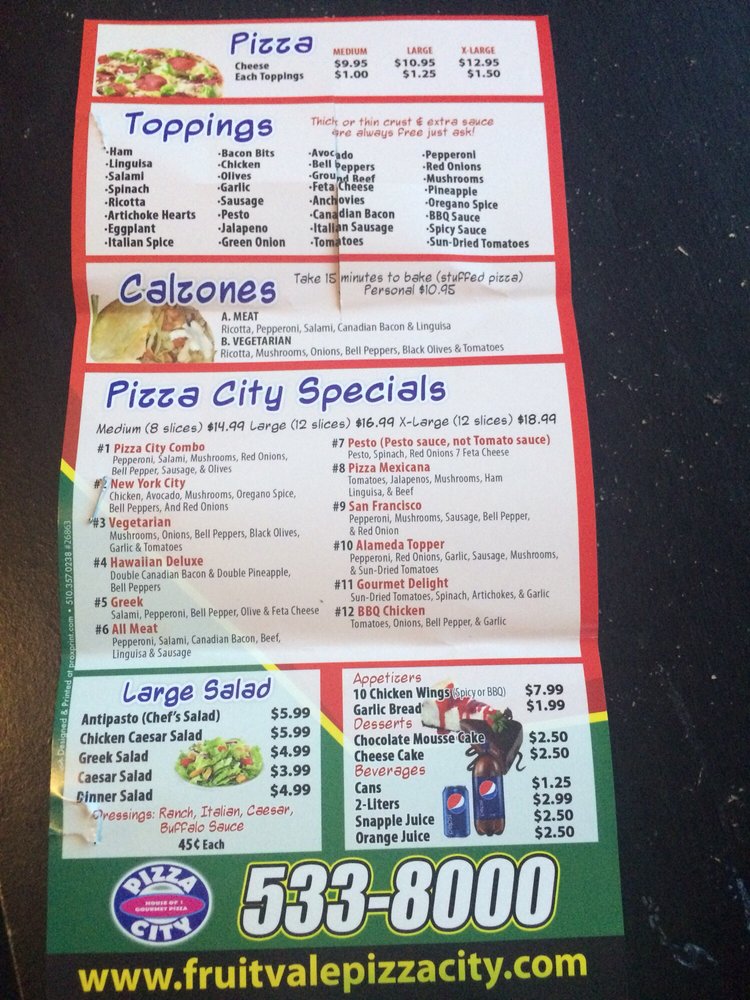 Pizza City Oakland Menu (Update 2025)